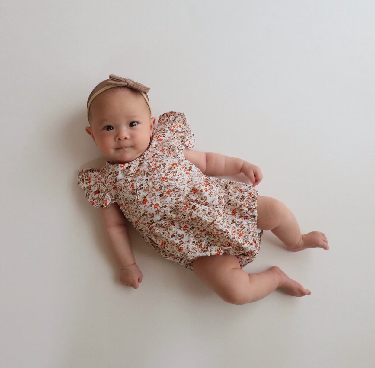 花柄 ノースリーブ フリル ロンパース 新生児 〜 90cm