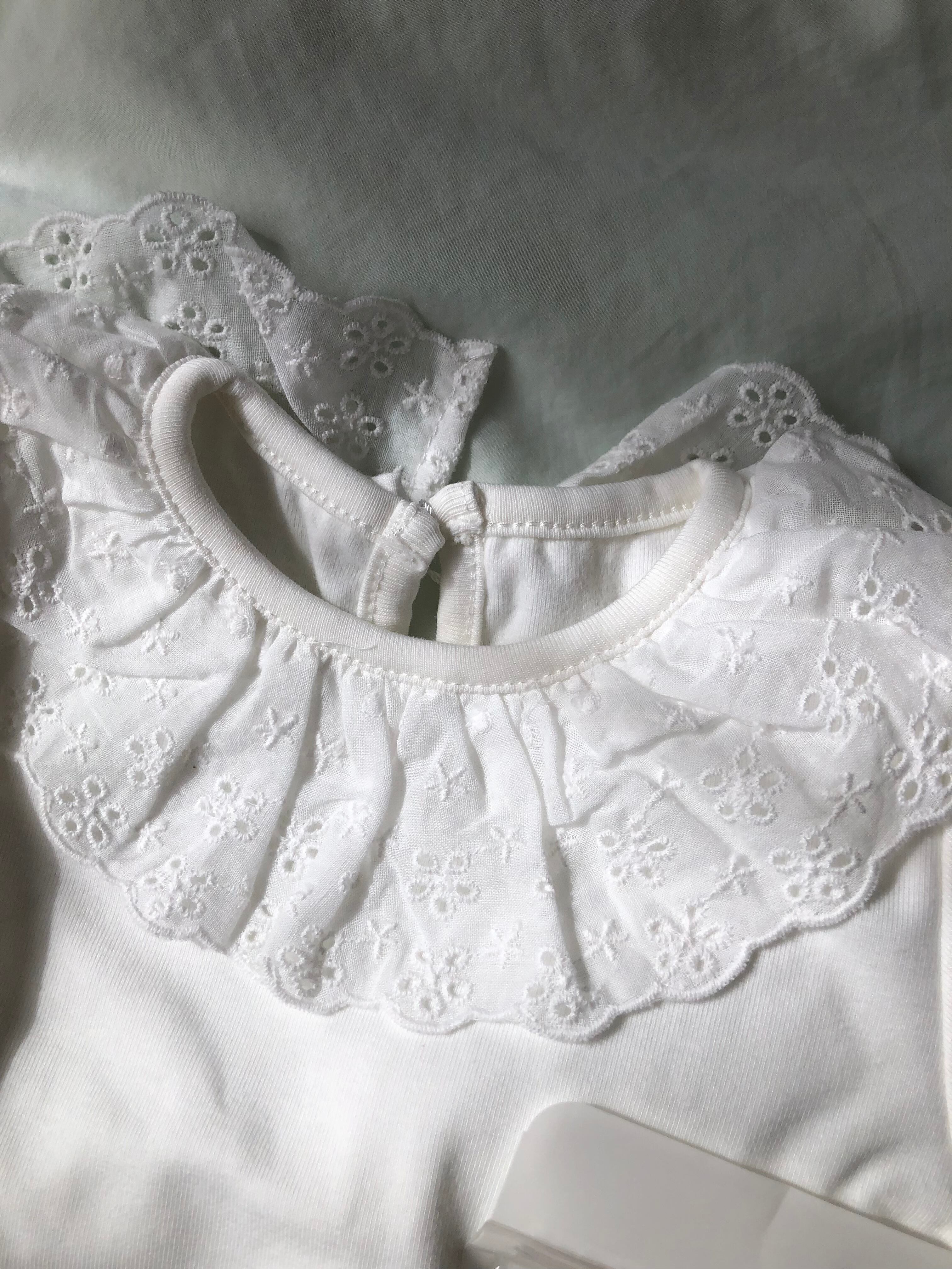 即納♪73サイズ レース襟付き フリル 長袖Tシャツとレース付きソックスのセット♡